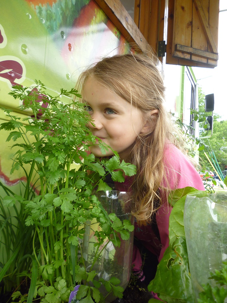 - une zone d’animation interactive sur l’origine des aliments mettant à l’honneur les liens qui unissent la terre à l’assiette de manière concrète et vivante, grâce à des jeux sensoriels ludiques et un espace potager en pots avec des contenants diversifiés pour présenter la panoplie des modes de culture possibles.